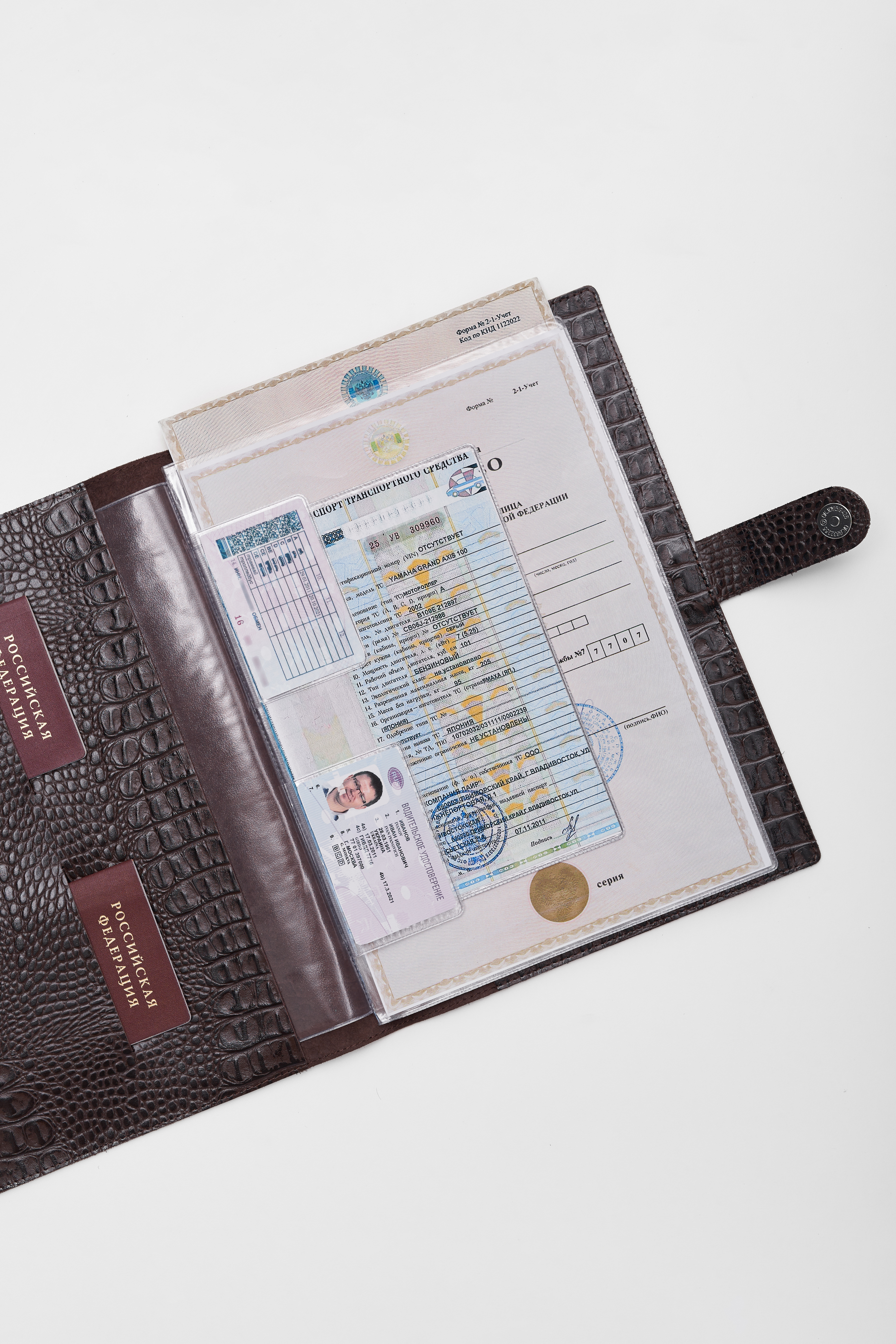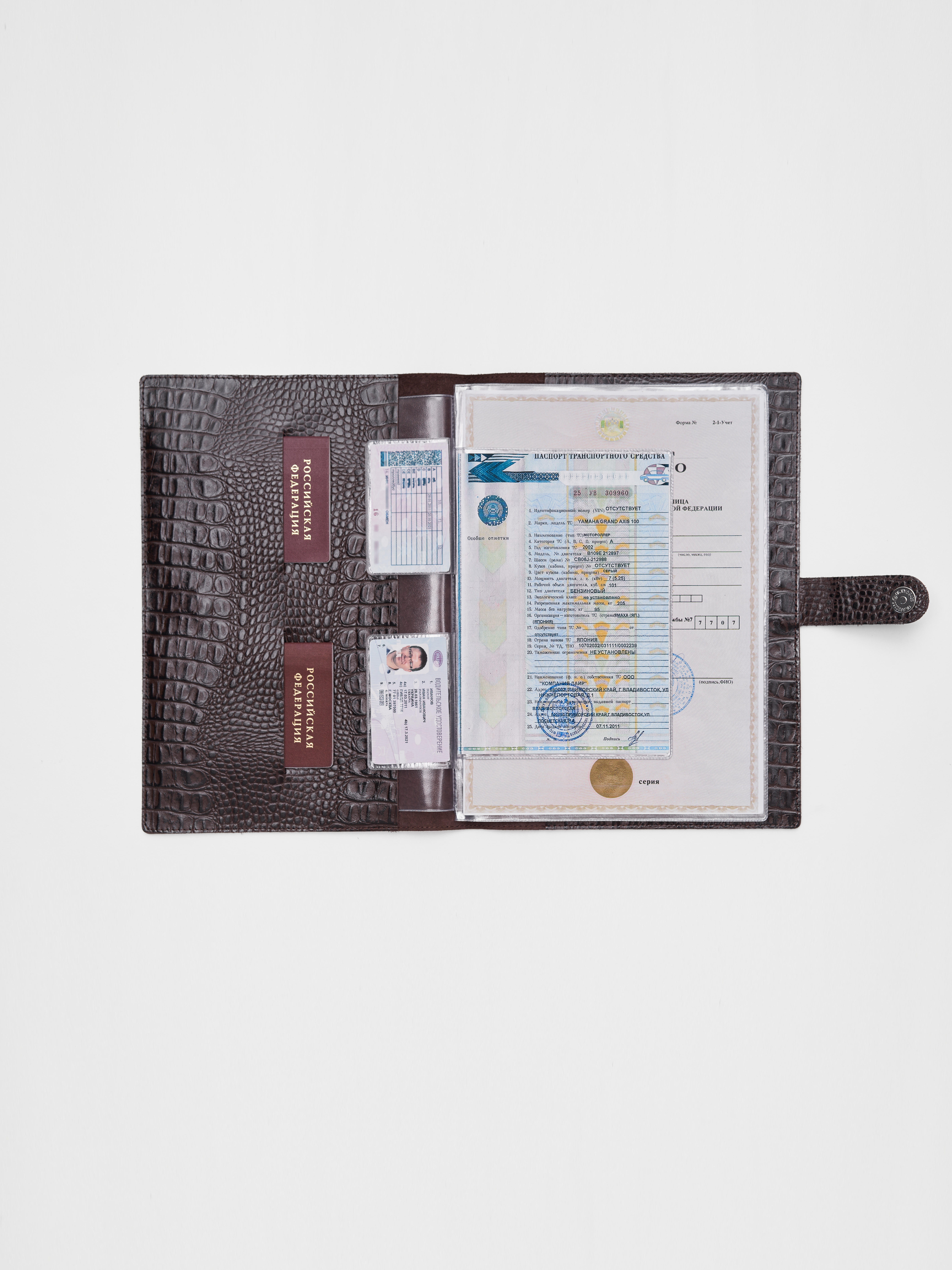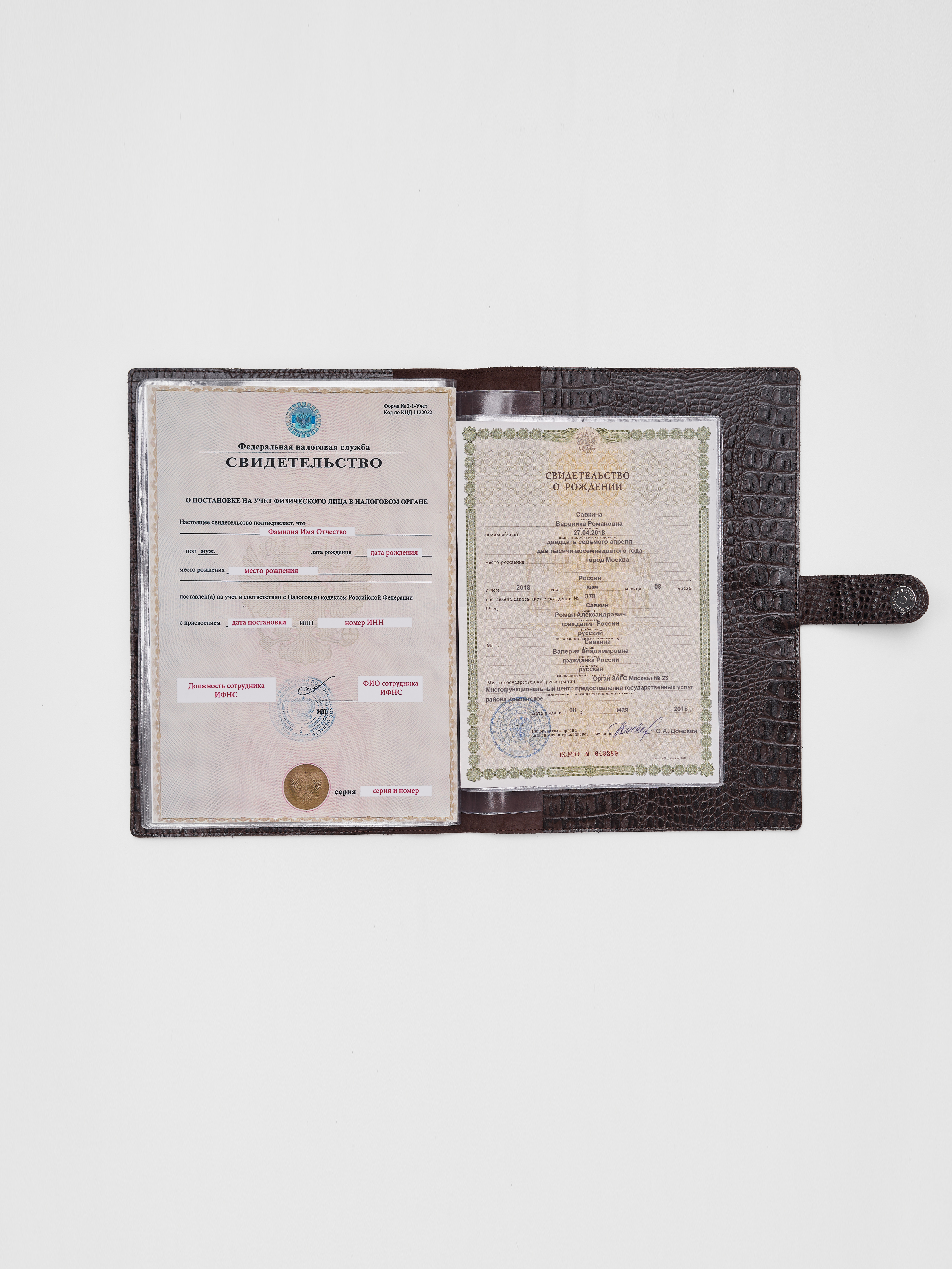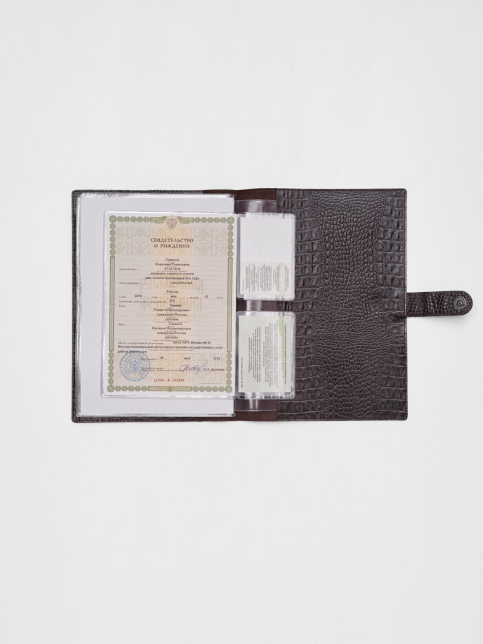 Папка для хранения документов. В папку с файлами а4 поместится комплект документов на четырех человек: паспорта, детские свидетельства о рождении, дипломы и многое другое. Папка для документов семейная Smart Folder поможет бережно хранить личные документы вдали от посторонних глаз, а так же оперативно взять все необходимое в случае форс-мажора (пожар, наводнение и т.д.). Кроме того, дорожный органайзер с кармашками поможет упорядочить документы в отпуске и путешествии. Обложка папки изготовлена из мягкой натуральной кожи высочайшего качества с потрясающей фактурой под крокодила. Натуральная кожа — это надежный, безопасный и более долговечный материал, чем экокожа, резина или пластик, она позволит вам с удовольствием пользоваться аксессуаром, изготовленными из этого материала, долгие годы.