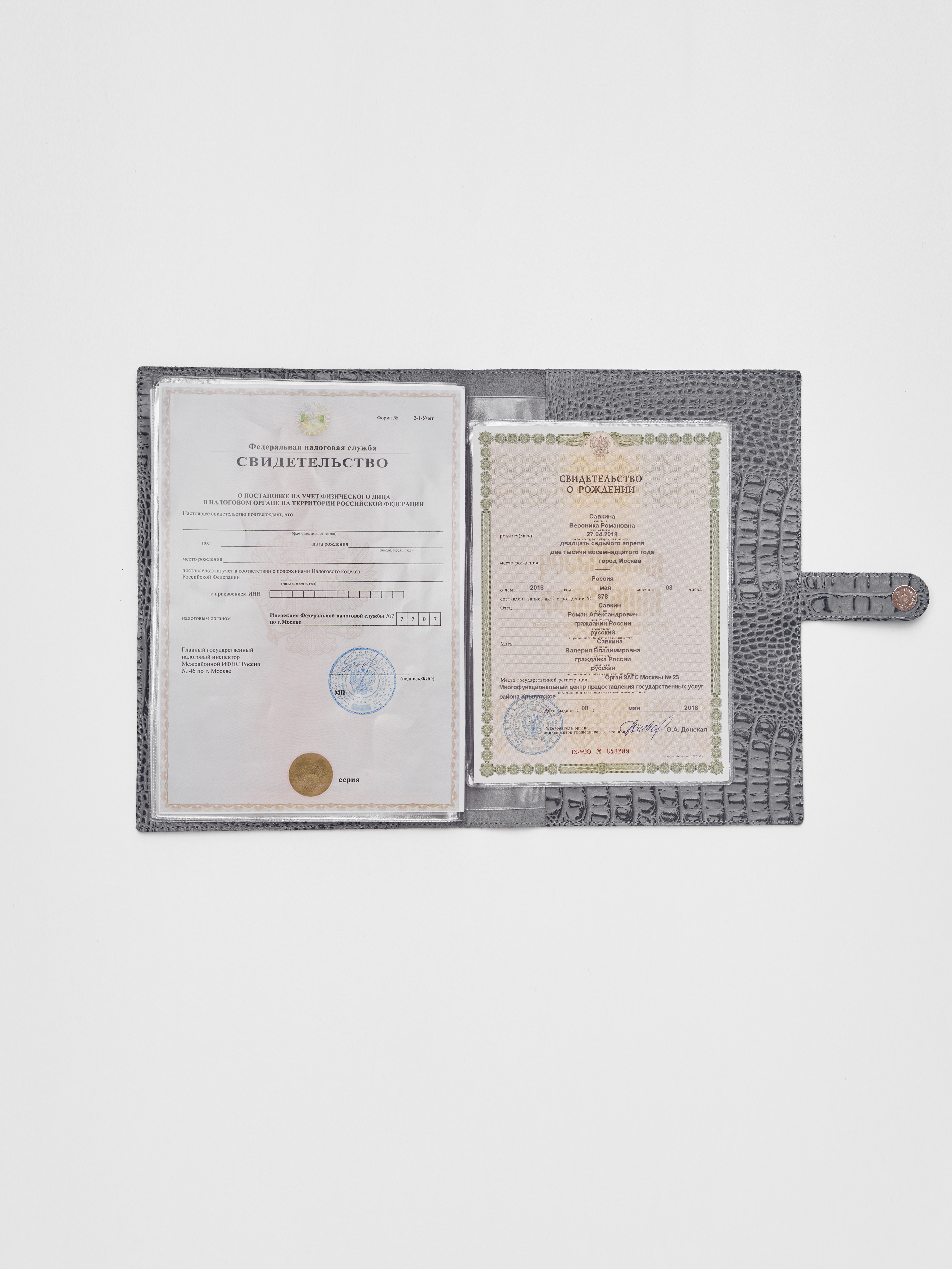 — 4 отделения формата А4 (ИНН, Новое свидетельство о рождении, мед. полис, сертификаты)