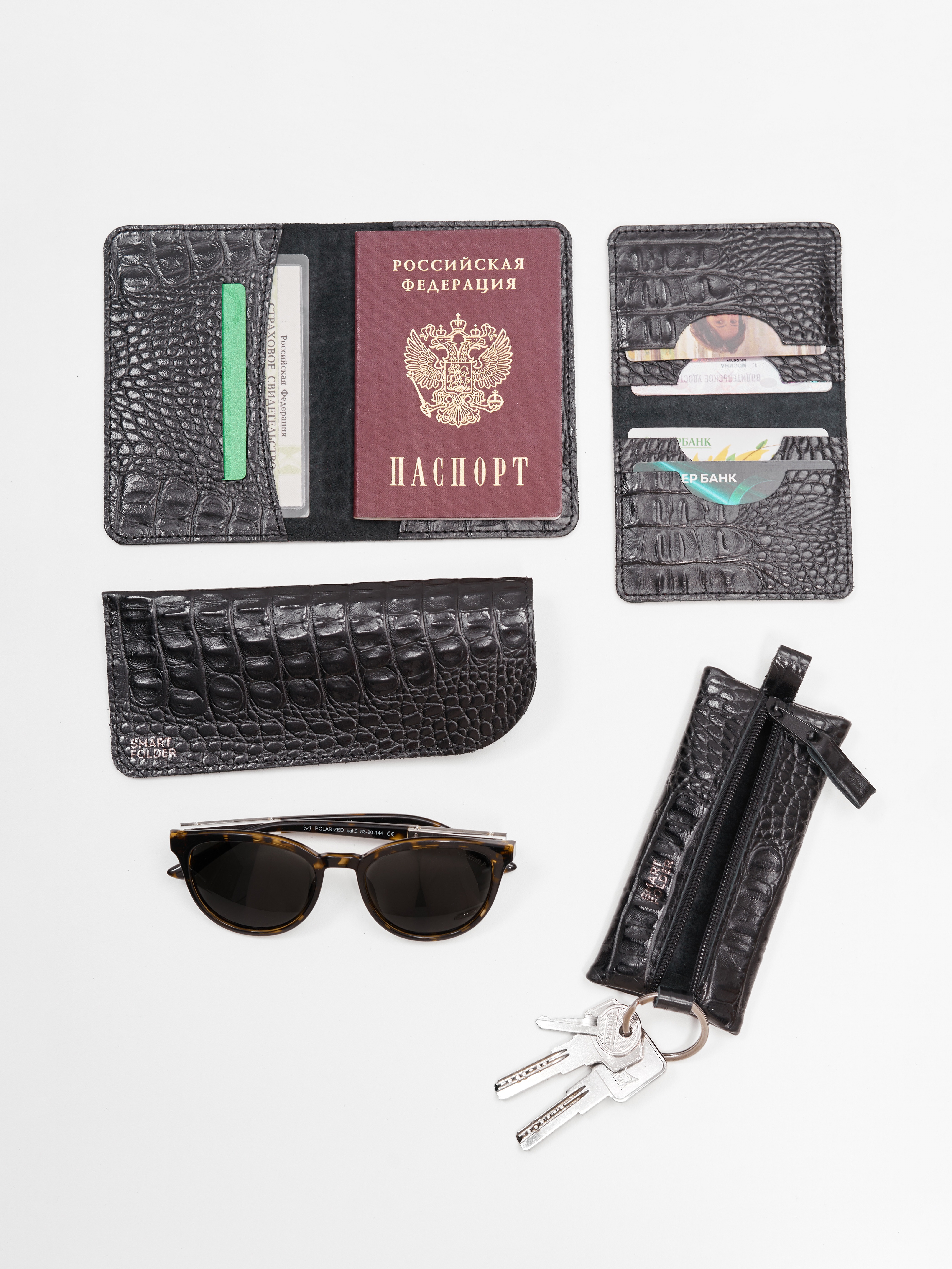 Уникальный подарочный набор аксессуаров из натуральной кожи – это идеальное сочетание элегантности и функциональности. В нем вы найдете все необходимое для покрытия разнообразных потребностей, оставаясь в едином стиле: обложку на паспорт, картхолдер, футляр для очков и ключницу. Каждый предмет изготовлен с большой заботой о качестве и деталях, чтобы удовлетворить самых требовательных покупателей.
